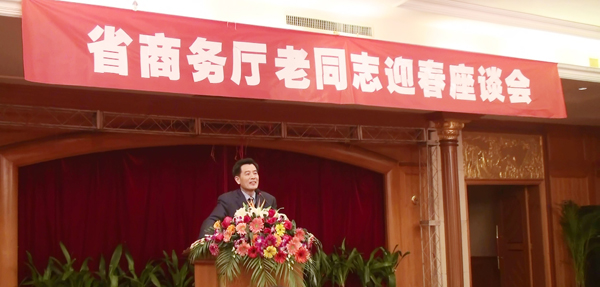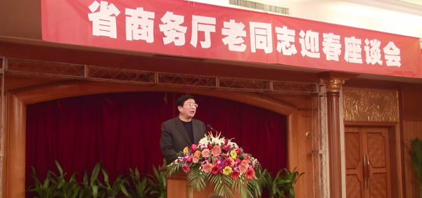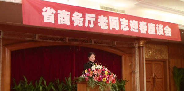 在新春佳节即将到来之际,2月3日,我厅在富豪大酒店召开了离退休老同志迎春座谈会。伍再谦厅长和在家的厅领导参加了会议。刘翠兰副厅长主持了座谈会。会上李文尧副厅长代表厅党组通报了2009年商务工作情况和新的一年工作打算,张世昌等三位同志代表老同志发了言。最后,伍再谦厅长发表了热情洋益的新春祝词。